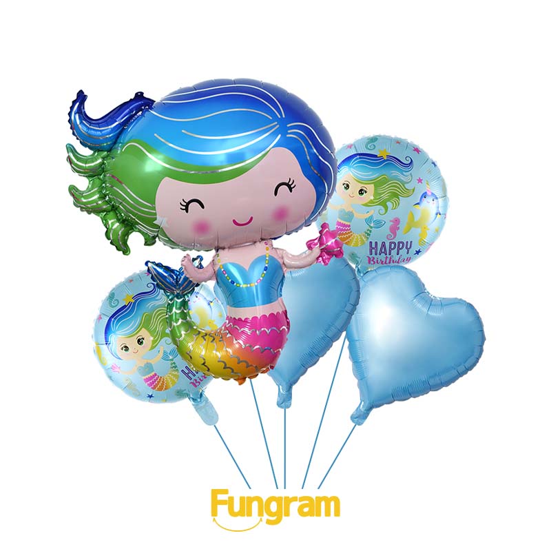 5pcs/Set Blue Ocean Mermaid-shaped Mylar Set Balloon Manufacturers
