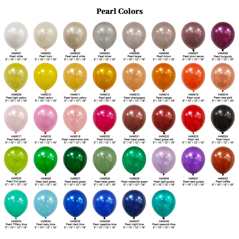 OEMOur Pearl Latex Balloons collection features 38 beautifully luminous colors, each finished with a soft pearlescent sheen that gives a touch of elegance to any celebration. Ideal for weddings, baby showers, anniversaries, or premium balloon decor, these balloons reflect light with a gentle radiance that creates a dreamy, polished atmosphere.