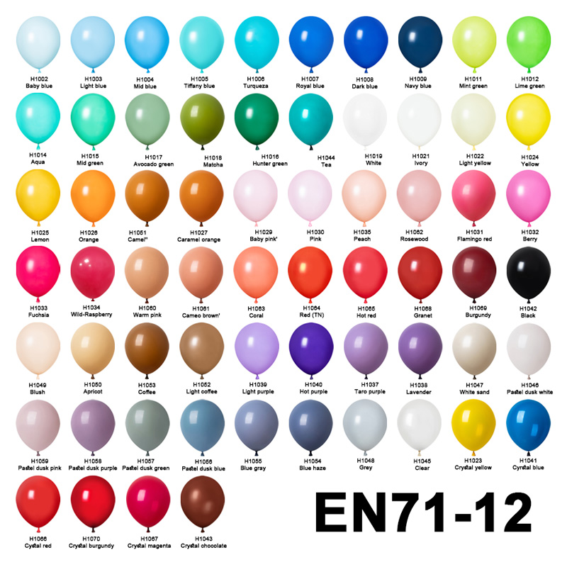 OEMExplore our full range of Standard Color Latex Balloons, featuring a stunning collection of 56 carefully curated shades — from classic primary tones to soft pastels and trendy neutrals. Whether you're decorating a kids' party, wedding, baby shower, or corporate event, this series offers maximum versatility with a consistent high-gloss finish.